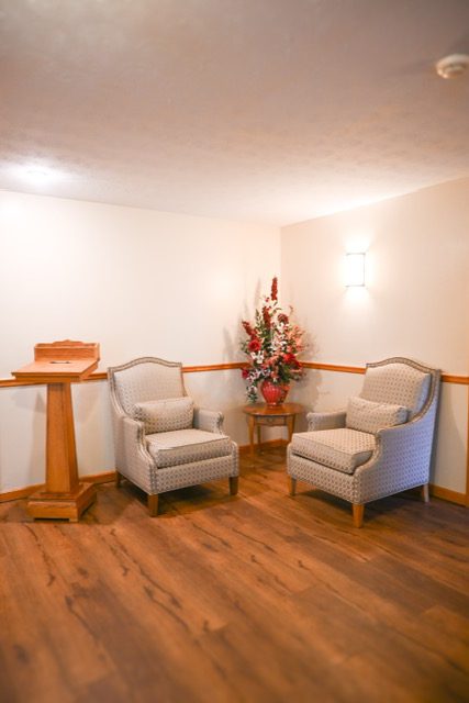 Both our main chapel and secondary chapel offer ample seating that can be rearranged to suit the individual family’s needs. We encourage families to gather in our comfortable lounge before or after services. Our on-site selection room includes a number of high-quality caskets on display so families can browse funeral merchandise at their convenience from right here at our funeral home.